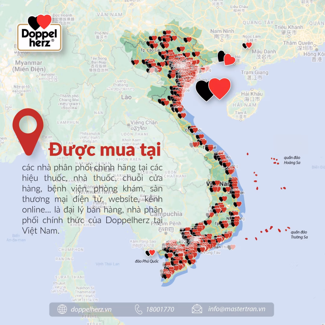 Hiện tại, Doppelherz đã có mặt tại hơn 70 quốc gia trên thế giới và tiếp tục giữ vững vị trí dẫn đầu tại Đức về Vitamin và khoáng chất. Tại thị trường Việt Nam, Doppelherz được phân phối độc quyền bởi Công ty Cổ phần Mastertran và đã hiện diện tại hơn 10.000 nhà thuốc. Với hơn 14 năm có mặt tại Việt Nam, Doppelherz ngày càng củng cố vị thế và được người tiêu dùng Việt tin tưởng khi tìm kiếm các sản phẩm bổ sung dinh dưỡng và hỗ trợ sức khỏe.