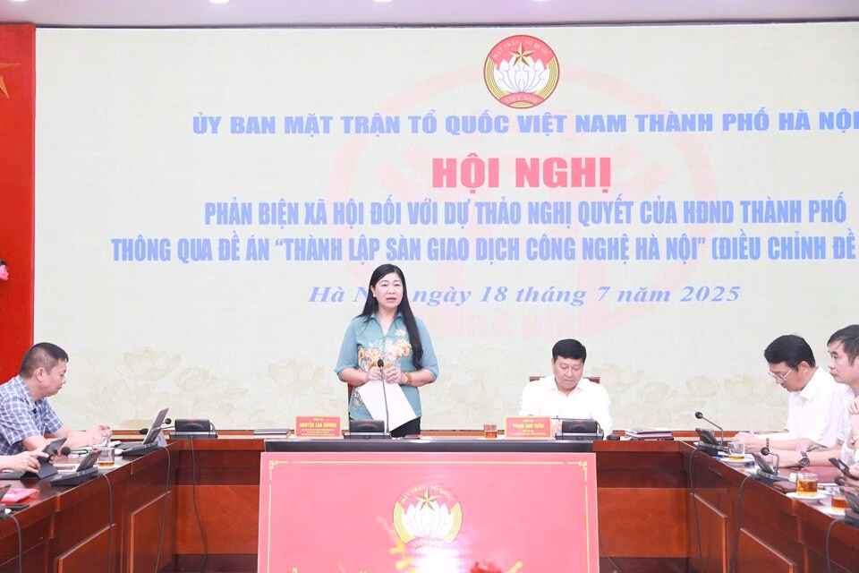 Ủy ban Mặt trận Tổ quốc Việt Nam thành phố Hà Nội vừa tổ chức Hội nghị phản biện xã hội đối với dự thảo Nghị quyết của Hội đồng Nhân dân thành phố thông qua Đề án ‘Thành lập sàn giao dịch công nghệ Hà Nội’ (điều chỉnh Đề án 1442). Hội nghị do Ủy viên Ban Thường vụ Thành ủy, Chủ tịch Ủy ban Mặt trận Tổ quốc Việt Nam thành phố Hà Nội Nguyễn Lan Hương và Phó Chủ tịch Ủy ban Mặt trận Tổ quốc Việt Nam thành phố Hà Nội Nguyễn Anh Tuấn chủ trì.