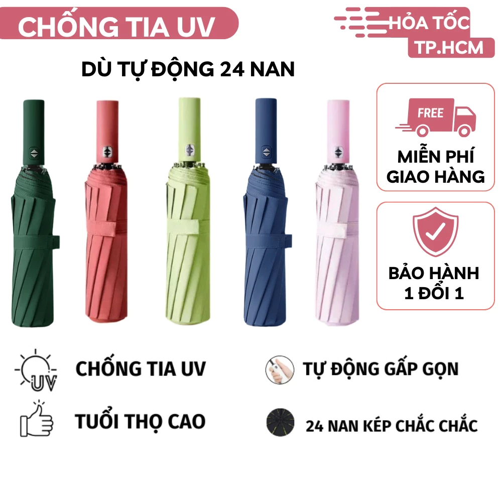 - Dù Che Nắng Mưa Tự Động 12 Nan Kép: Giá 160.000 đồng, 12 nan kép, khả năng chống nước và chống tia UV tốt, gập gọn và dễ dàng mang theo.