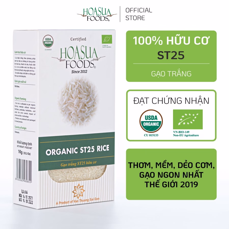 Sản phẩm gạo hữu cơ xát dối Hoa Sữa FOODS ST25 không chỉ đảm bảo chất lượng mà còn rất phù hợp cho các bé ăn dặm với công thức chế biến đơn giản.