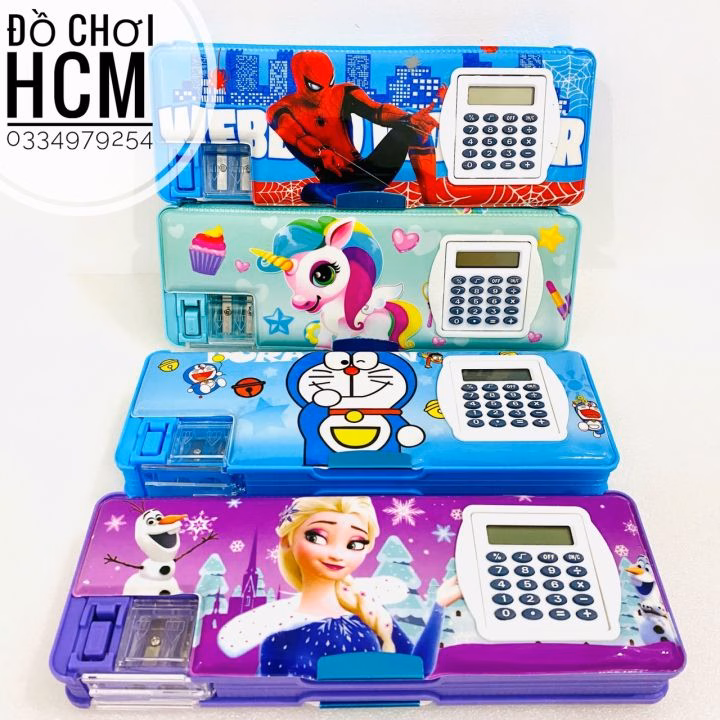 🔥 [KÈM MÁY TÍNH] Hộp bút hai ngăn có đồ chuốt, máy tính nhỏ gắn liền cho bé đựng viết/thước hình elsa/spider man/doremon đang giảm giá!