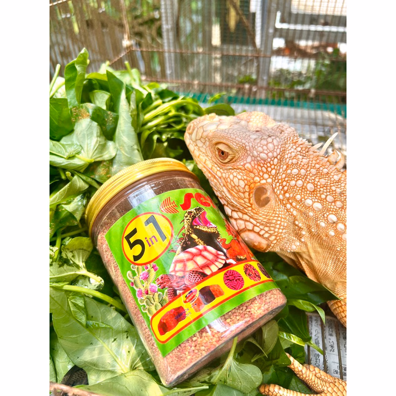 Thức ăn bổ sung 5in1 cho Iguana, rồng úc và rùa là một lựa chọn phổ biến hiện nay. Loại thức ăn này thường chứa 5 thành phần chính: vitamin, khoáng chất, protein, chất béo và carbohydrate. Ưu điểm của thức ăn bổ sung 5in1 là: