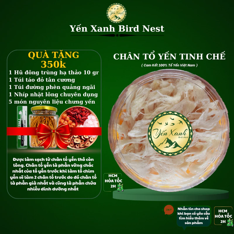 🔥 Chân Tổ Yến Tinh Chế Nguyên Chất 100% – Yến Xanh Official Store. đang giảm giá!