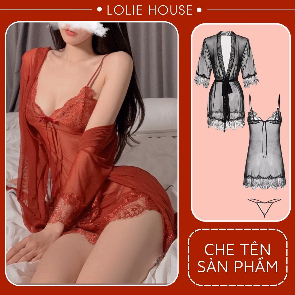 🔥 Váy ngủ sexy – Đầm ngủ sexy ren voan mỏng có kèm áo choàng thắt dây LOLIE HOUSE – VN2 đang giảm giá!