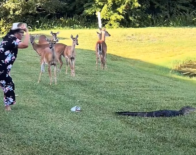 Video ghi lại sự việc đã được chia sẻ trên TikTok bởi Sarah Louise Martin, một du khách đến từ Gravesend, Anh. Trong video, con cá sấu đang đi dạo trên bãi cỏ gần một đàn hươu thì bị một người phụ nữ ném dép vào. Có vẻ như người phụ nữ này muốn xua đuổi con cá sấu vì lo sợ nó sẽ tấn công đàn hươu.