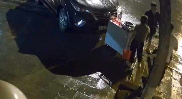Khi xe anh Bình vừa đẩy lên vỉa hè thì người đàn ông chạy ngang qua, xong lùi xe lại, bước xuống chửi bới anh Bình. Anh Bình lấy điện thoại ra quay lại thì người đàn ông nói ‘mày muốn gì?’, rồi lái xe tông vào xe bán hàng.